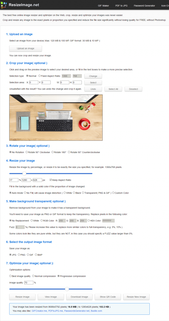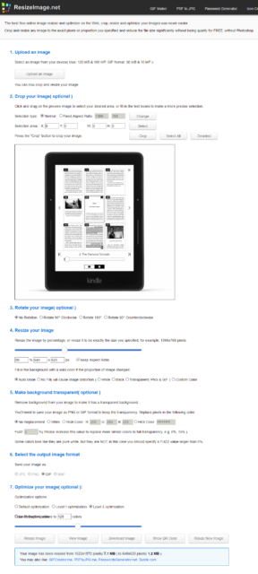 Il funzionamento è davvero molto semplice e intuitivo: basta visitare la pagina ResizeImage.net, e seguire 7 semplici passaggi.