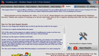 Fermo restando che dopo una infezione virulenta una riparazione ha una probabilità di successo molto remota, lo strumento più efficace per una operazione di questo tipo è sicuramente Windows Repair di Tweaking.com. Questo software, gratuito per uso personale, è stato progettato per riparare la maggioranza degli errori del Registro di configurazione, delle autorizzazioni dei file di sistema, delle configurazioni di Internet Explorer, di Windows Update e del firewall di Windows. Sono inoltre previste una serie di riparazioni che riguardano problemi che si verificano con l’installazione di alcuni software e con l’azione di virus e malware.