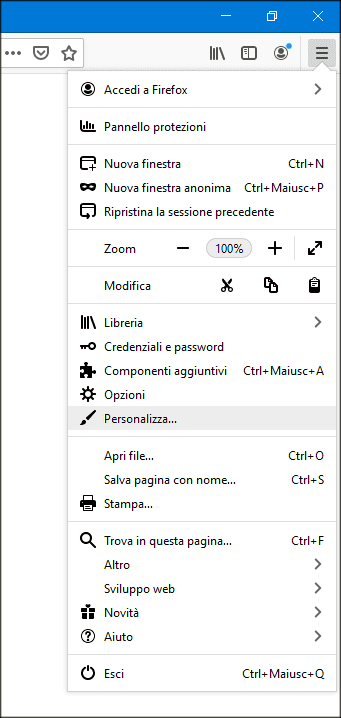Anche Firefox include infatti un gioco “segreto”, un’Easter Egg che in pratica replica lo schema classico di Pong in cui il posto della pallina viene preso da un’icona a forma di unicorno. Per attivare il gioco dell’Unicorno di Firefox occorre prima di tutto entrare nel Menu di personalizzazione del browser tramite l’icona-hamburger in alto a destra, quindi selezionando la voce Personalizza.