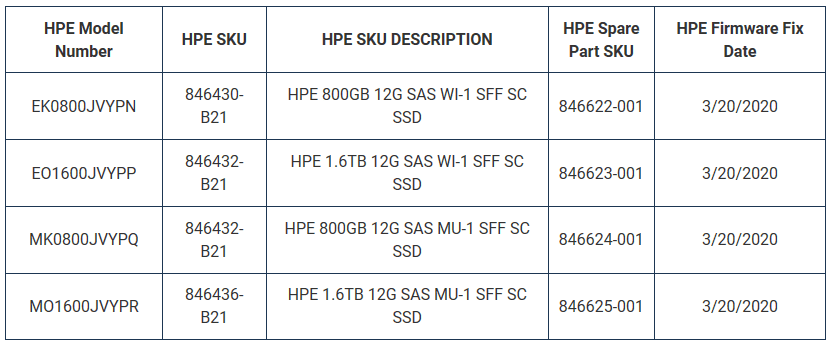 Hewlett Packard Enterprise (HPE) ha pubblicato un nuovo bollettino di supporto con tanto di firmware aggiornato, e l’invito pressante ai clienti ad aggiornare alcuni modelli di dischi SSD basati su standard SAS (Serial Attached SCSI) per evitare di ritrovarsi coi server “suicidati” e i dati irrecuperabili nel giro di qualche mese.