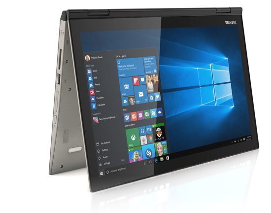 Da notare che a pieno carico la piccola ventola integrata risulta essere piuttosto rumorosa, ben al di sopra degli standard a cui siamo abituati. Nulla di evidente nell’utilizzo quotidiano, ma considerevole quando vengono eseguiti compiti impegnativi per il processore o per la sezione grafica. Per il contenimento del peso del suo convertibile Toshiba non ha potuto integrare batterie di grandi dimensioni, incidendo direttamente sull’autonomia, che con otto ore dichiarate risulta buona nel caso di schermo Full Hd, ma inferiore (meno di 6 ore in utilizzo normale), con la versione Ultra Hd.