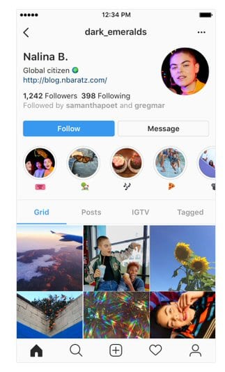 Nel primo caso proposto da Instagram, la foto profilo si sposta a destra. Il nome invece resta a sinistra, scritto con un font più grande. Lo username compare in altro al centro della pagina, in risalto su tutto il resto. Le dimensioni dei numeri di follower e seguiti diventano più piccole. Il numero dei post fatti dall’utente scompare del tutto.