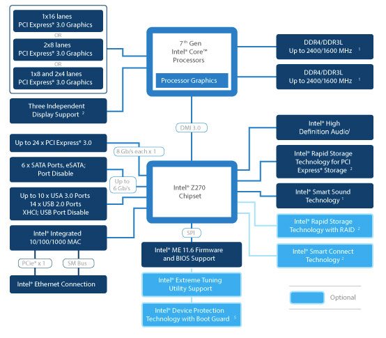Per utilizzare uno dei processori con architettura Kaby Lake-S è necessario possedere una delle nuove piattaforme con chipset della serie 200, oppure una scheda madre di generazione precedente con chipset della serie 100. I processori Intel Core di settima e di sesta generazione condividono, infatti, sia l’architettura sia il socket LGA1151 e per questo motivo le rispettive generazioni di schede madri sono compatibili con entrambe le famiglie di processori.