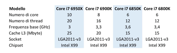 Le caratteristiche trapelate fino a questo momento dei nuovi Core i7 con architettura Broadwell-E.