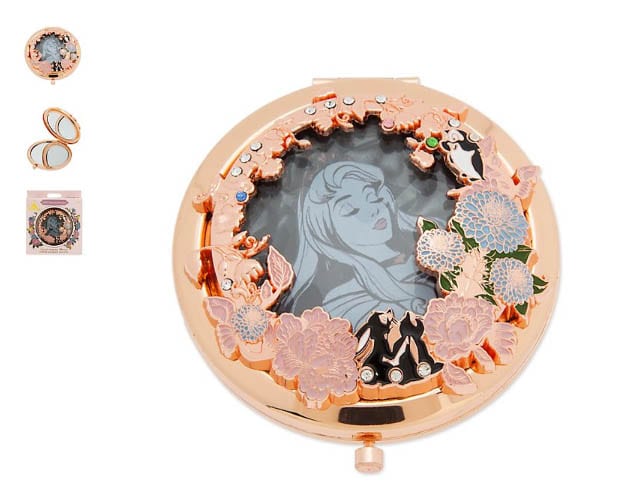 Lo specchietto è caratterizzato da un design color oro rosa e decorato con elaborati dettagli floreali e con un’incantevole immagine di Aurora. In vendita al prezzo di € 16,00.