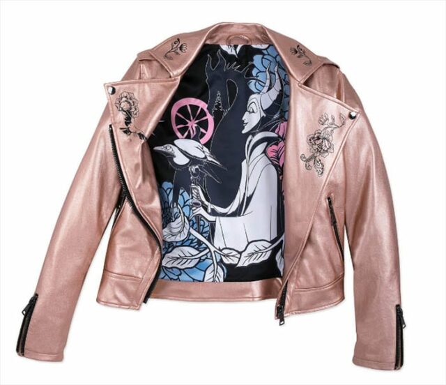 Un’altra chicca dallo store americano è senza alcun dubbio il giubbotto completamente in oro rosa, rivestito internamente da una stampa con raffigurata Malefica ed il suo immancabile corvo nero. Il prezzo del capo è di $ 69,95.