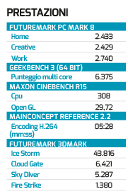 Nonostante la presenza del masterizzatore Dvd, peso e dimensioni sono interessanti: il Pavilion 15-an000nl pesa 2,1 kg ed è spesso 2,5 centimetri. Sono valori molto ridotti per la categoria e un indiscutibile punto a favore della macchina, che ha pur sempre un display da 15,6″. Questo notebook non è un modello di fascia alta, anzi ha caratteristiche più da fascia media. Il processore è uno Skylake di tipo dual core, precisamente un Core i7-6550U a basso consumo (frequenza base 2,5 GHz, turbo mode 3,1 GHz). Il chip grafico è un Nvidia Geforce 940M con 2 Gbyte di memoria Ddr3 integrata: una soluzione di fascia medio-bassa adatta a un utilizzo generico, non specificatamente pensata per i giochi 3D più pesanti. È sempre basata sulla recente architettura Maxwell ma rispetto alla 960M ha meno unità di elaborazione (384 contro 640), non supporta la veloce memoria Gddr5 e ha un bus ridotto a 64 bit (anziché 128). I giochi recenti possono essere utilizzati con un buon framerate purché si abbassi la qualità grafica e si riduca la risoluzione. Le prestazioni complessive hanno risentito parecchio dell’adozione di un disco meccanico, un Toshiba con capacità di 1 Terabyte, che rende palese la differenza rispetto a un più veloce disco Ssd. Si può notare bene all’avvio del sistema operativo e al tempo necessario a lanciare le applicazioni. Per fortuna non si è risparmiato sulla memoria Ram, pari a 8 Gbyte di tipo Ddr3-L.