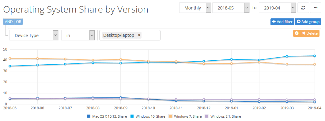Presto, molto presto arriverà la parola fine al supporto di Windows 7, e da gennaio 2020 le uniche utenze in grado di aggiornare lo storico sistema operativo saranno le aziende disposte a pagare profumatamente per il privilegio. Almeno per il momento, comunque, l’esodo verso Windows 10 sembra essere solo un miraggio del reparto marketing di Microsoft.