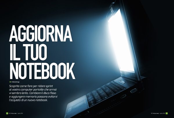 Il notebook è un computer che offre ridotte, se non ridottissime, possibilità di aggiornamento rispetto a un sistema desktop, ma ciò non significa che sia impossibile ottenere maggiori prestazioni rispetto a quanto offerto dalla configurazione così come è stata acquistata in origine. Un notebook, a meno di guasti hardware che costringono alla riparazione o addirittura alla sostituzione, ha una vita media di almeno cinque anni. Ciò può non valere per chi ha esigenze particolari come la necessità di avere sempre la massima potenza di calcolo, ma per l’utente comune così come per quello professionale un notebook trattato in modo appropriato può durare molti anni. In entrambi i casi l’aggiornamento del disco, della memoria e del sistema operativo permettono di migliorare le prestazioni, l’esperienza di utilizzo e soprattutto di allungare la vita del vostro compagno di lavoro.
