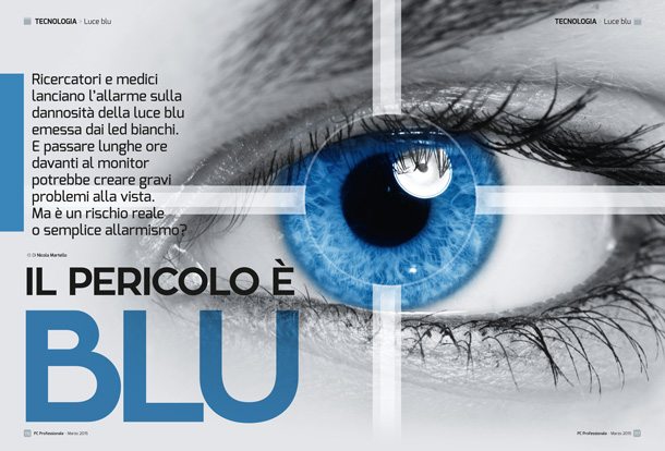 Questo danno non avviene in poche ore di esposizione ma dopo parecchie migliaia, un effetto cumulativo che è facilmente raggiungibile da una persona che lavora quotidianamente in un ambiente illuminato da luci fluorescenti o led, sta spesso davanti al monitor di un computer e fissa di frequente tablet e smartphone. Il pericolo è ancora maggiore per i bambini che usano spesso i dispositivi portatili con display a led, dato che il loro cristallino è molto più trasparente di quello di un adulto e quindi lascia arrivare alla retina una quantità  maggiore di luce blu. In passato si riteneva che i nostri occhi fossero messi in pericolo solo dalla luce ultravioletta (Uv) e da quella molto intensa (laser, il sole guardato senza protezioni adeguate), ma ricerche più recenti, svolte principalmente sui topi, hanno evidenziato il legame tra il progressivo deterioramento della retina e la prolungata esposizione alla luce blu prodotta dalle luci fluorescenti e soprattutto dai led bianchi. Il nostro occhio è particolarmente vulnerabile alla luce con lunghezza d’onda compresa tra 420 nm e 470 nm, un intervallo che coincide molto bene con il picco sul blu emesso dai led usati per illuminare i display e sempre più ambienti in cui viviamo.