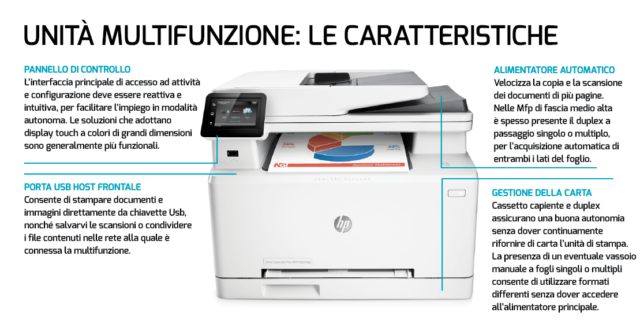 Integrazione, versatilità ed efficienza costituiscono tre virtù essenziali delle unità multifunzione – o semplicemente Mfp – ovvero di quella categoria di periferiche pressoché irrinunciabili in ufficio o nell’ambito di qualsiasi attività professionale che richieda l’effettuazione continuativa o anche solo saltuaria di copie, scansioni e stampe, nonché la gestione dei fax in ingresso e uscita. Come abbiamo più volte avuto modo di evidenziare nel corso delle prove sui singoli prodotti, un’unità multifunzione rappresenta uno strumento di lavoro eccellente che, proprio in virtù dell’integrazione e della sinergia tra le componenti (scanner e stampante in primis), assicura una produttività , una praticità e una comodità d’utilizzo nettamente superiori rispetto alla tradizionale soluzione a componenti separate, che in effetti è stata di fatto pressoché soppiantata e riservata più che altro per impieghi professionali più specializzati.
