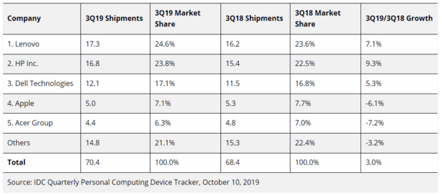 Anche per IDC il Giappone ha fatto segnare numeri record nelle spedizioni, così come la Cina e l’India che hanno superato le previsioni precedenti. I tre principali produttori di PC al mondo sono (ancora una volta) Lenovo, HP e Dell, Apple è ferma al quarto posto ma in caduta libera (-6,1% anno-su-anno).