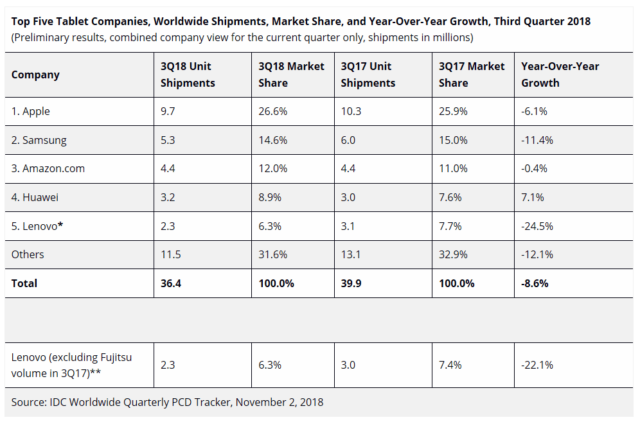La società di analisi IDC ha pubblicato le sue stime sull’andamento del mercato dei tablet nel terzo trimestre dell’anno 2018, un periodo che ha ancora una volta confermato la crisi di un business spesso sopravvalutato da digerati e venditori di pentole hi-tech. Per dirla in parole povere: i tablet, salutati un tempo come il futuro dell’informatica in casa, scuola e azienda, hanno ora solo un grande passato davanti a loro.