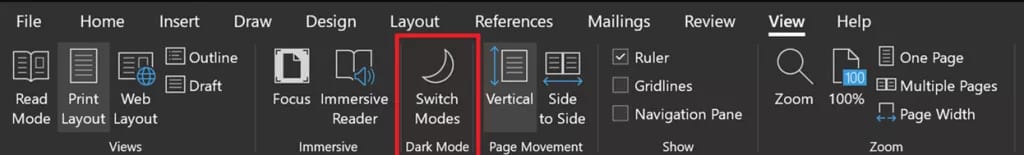 Nella barra strumenti ci sarà un bottone per muoversi tra le due modalità, tra pagina scura e chiara, e un’opzione su Word per disattivare perennemente la Dark Mode. Questo nuovo update somiglia molto a quello da poco lanciato su OneNote, che ha l’opzione per switchare da una all’altra modalità. Ecco come si mostra il bottone di switch da Dark Mode a modalità classica: