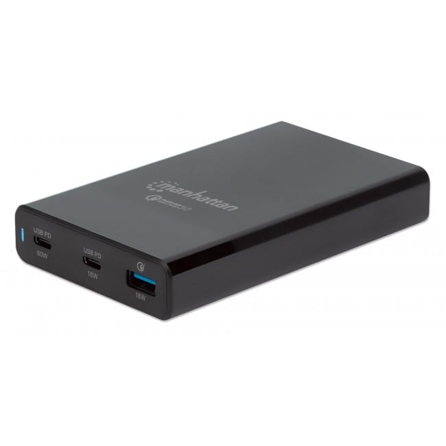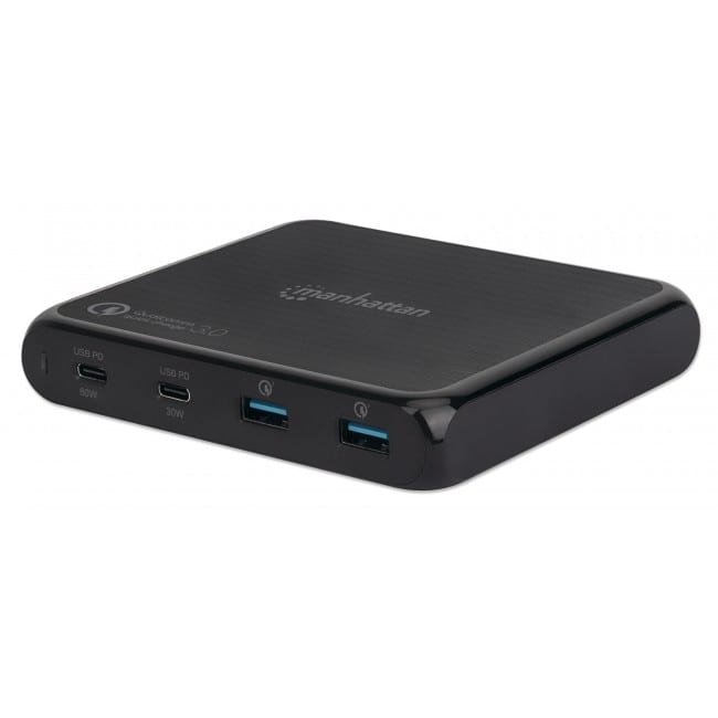 Infine, per chi è alla ricerca di una soluzione in grado di erogare maggiore potenza sulla porta Usb Type-A, per ricaricare molto più velocemente gli smartphone e altri dispostivi compatibili, Manhattan ha una gamma di alimentatori compatibili anche con la tecnologia Quick Charge 3.0 di Qualcomm. Come ad esempio IPW-USB-65W, un piccolo parallelepipedo (misura 11,8 x 7,2 x 1,9 cm e pesa 378 grammi), che fornisce una potenza massima complessiva di 65 watt. In questo modello sono presenti due porte Usb Type-C (in grado di erogare rispettivamente 60 W e 18 W) e una porta Usb Type-A compatibile Quick Charge per carichi fino a 18 W. Il costo in questo caso è di 75,80 euro.