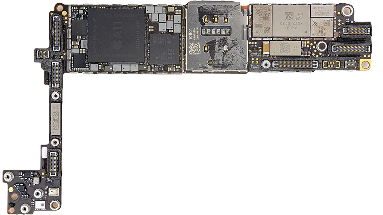 Il SoC A11 contiene 4,3 miliardi di transistor ma è più piccolo del 40% rispetto all’A10; è sormontato da 3 GB di memoria Lp-Ddr4X (sono 2 GB nell’iPhone 8).