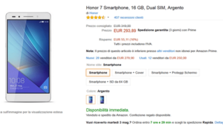 Interessante anche lo sconto sul più recente Honor 5X, in vendita su Amazon a 229 euro (colore argento), contro i 249,99 del prezzo attuale sullo store ufficiale Vmall.