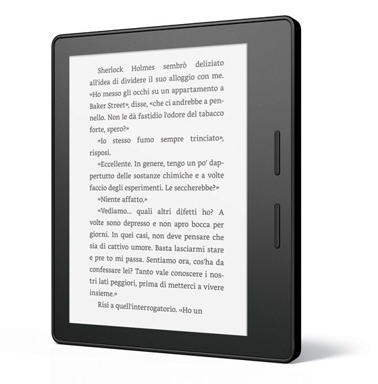 Un nuovo lettore di ebook si aggiunge nella famiglia di dispositivi Amazon. È il Kindle Oasis, più sottile del 30% e più leggero del 20% rispetto a ogni altro modello della linea. L’Oasis è davvero sottile e dotato di un’impugnatura ergonomica che, secondo il costruttore, sposta il centro di gravità nel palmo della mano, creando un bilanciamento perfetto che consente di leggere comodamente per ore con una sola mano.