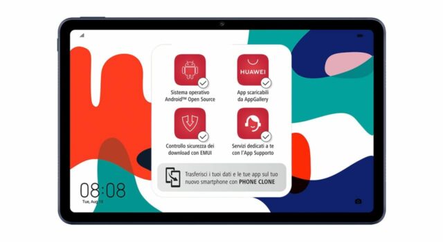 Il produttore cinese ha annunciato l’arrivo in Italia del nuovo Huawei MatePad con schermo da 10,4 pollici. Il tablet è in pratica la versione economica del MatePad Pro, ma possiede un design più tradizionale e ovviamente specifiche inferiori. Gli utenti possono scegliere la versione WiFi o la versione LTE sullo store online e Amazon, presso lo Huawei Experience Store di Milano e nei principali negozi dell’elettronica di consumo.