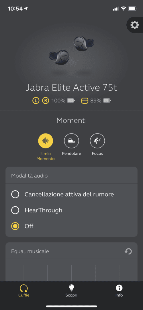 Al termine dell’aggiornamento all’interno dell’app oltre alla modalità HearThrough compare anche quella Cancellazione attiva del rumore.