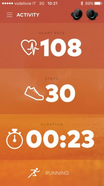 Tra le tante caratteristiche e funzioni offerte dai The Dash, quelle relative alla parte fitness e al tracciamento dell’attività fisica, sono al momento ancora limitate, anche se Bragi ha dichiarato di essere al lavoro per estendere le funzionalità offerte dall’app con l’introduzione di visualizzazioni grafiche dei dati misurati e altro ancora. In effetti al momento i dati raccolti servono per essere riassunti dalla voce dei The Dash durante l’attività fisica e sono salvati sulla memoria della custodia degli auricolari e non sullo smartphone.