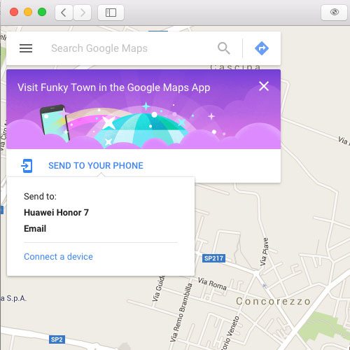 Ma non è tutto. Se si è loggati da desktop con il proprio account Google, comparirà anche uno screenshot che invita a visitare Funky Town sul proprio smartphone chiedendo la connessione a un dispositivo.