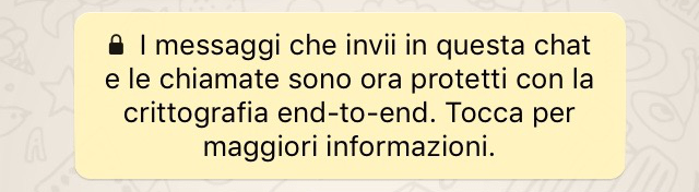 Un’avviso informa dell’attivazione direttamente nella prima chat con un contatto che si apre.