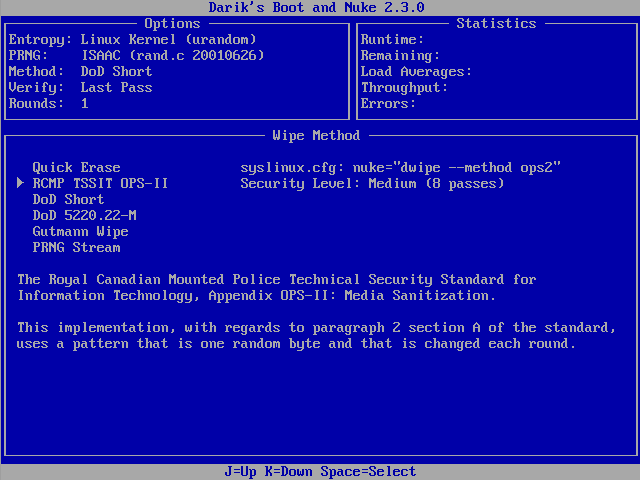 Con M potete scegliere il metodo di cancellazione: in questo caso RCMP TSSIT OPS-II.