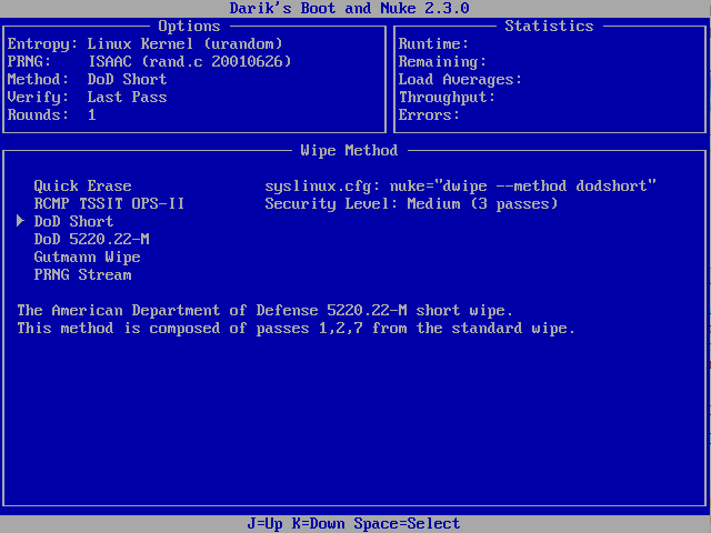 Con M potete scegliere il metodo di cancellazione: in questo caso DoD Short (quello che vi consigliamo).