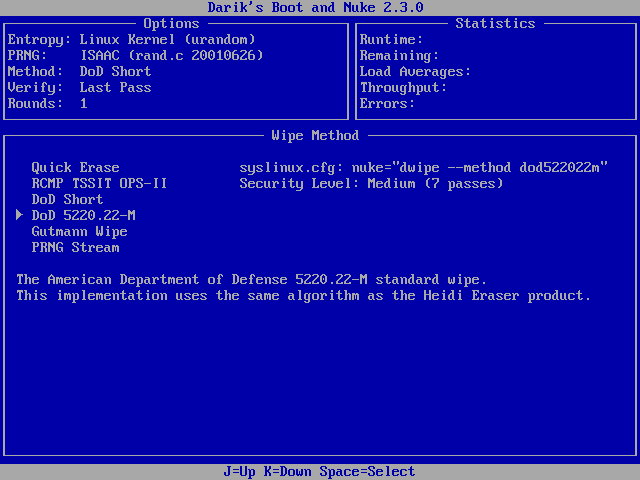Guida passo passo a DBAN – 12 Con M potete scegliere il metodo di cancellazione: in questo caso Dod 5220.22-M.
