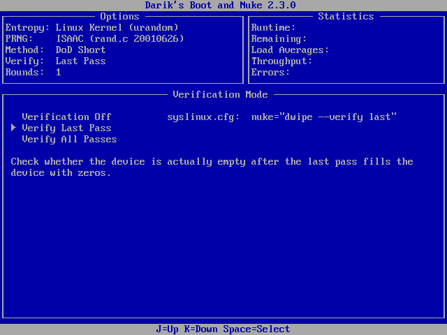 Guida passo passo a DBAN – 7 Con V scegliete il tipo di verifica (off, dopo l’ultima passata, dopo ogni […]