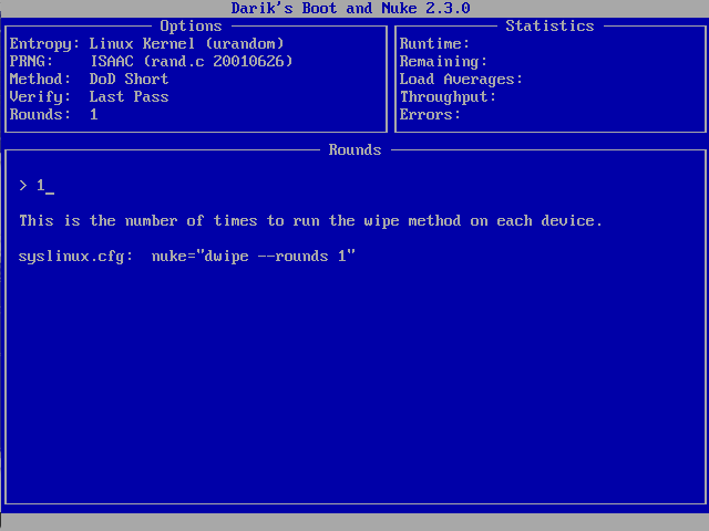 Con R (Rounds) impostate il numero di volte che il metodo di cancellazione viene applicato (di default è 1).
