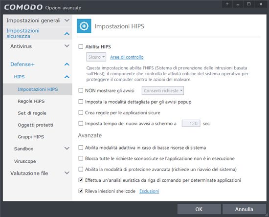 Comodo offre una potente funzione che tiene sotto controllo i componenti critici del sistema operativo per individuare malware sconosciuti, però non è attiva per default