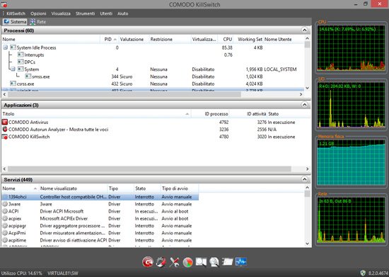 Comodo Killswitch, per esempio, è un tool opzionale (viene scaricato e installato al primo utilizzo) che permette di controllare i processi e le attività del sistema; è una versione più ricca e informativa della Gestione attività di Windows.