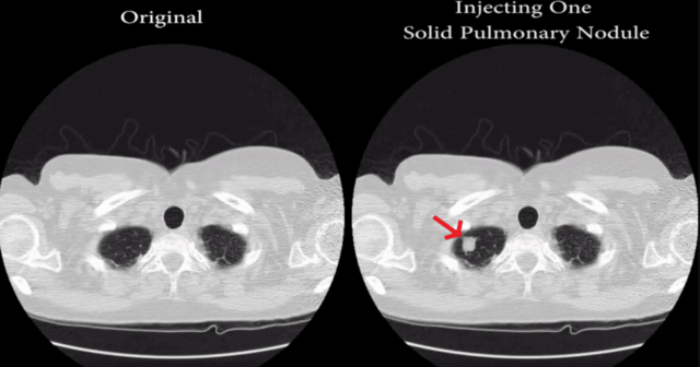 Piuttosto che limitarsi ai volti e ai gattini di cui sopra, CT-GAN è stato addestrato a generare noduli tumorali all’interno delle analisi radiologiche dello stato dei polmoni: 70 di queste analisi sono state contraffatte, quindi fornite a tre diversi radiologi che nel 99% dei casi hanno confermato la diagnosi di cancro nonostante i noduli fossero opera della IA. Sulle analisi in cui CT-GAN aveva rimosso i tumori realmente esistenti, i suddetti radiologi hanno confermato la (finta) guarigione nel 94% dei casi.