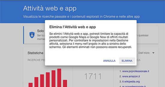 Come cancellare lo storico dell’attività  web del vostro account Google