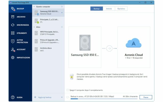 La velocità di caricamento nel cloud è notevole, ma comunque inferiore rispetto a quelle ottenibili nella rete locale. I backup incrementali limitano le dimensioni dei trasferimenti successivi al primo.