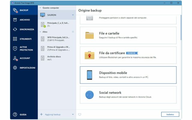 Tra le origini di backup per la versione Premium di True Image c’è anche File da certificare, una tecnologia basata su blockchain che garantisce l’autenticità dei documenti salvati.