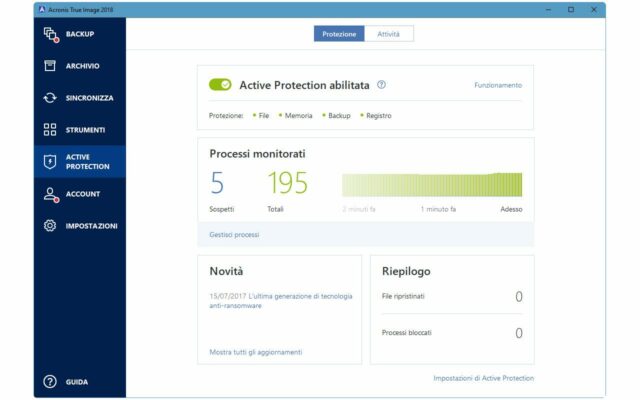 Active Protection è un modulo sempre attivo in background, che tiene sotto controllo tutti i processi in esecuzione e blocca automaticamente quelli che mostrano comportamenti sospetti.