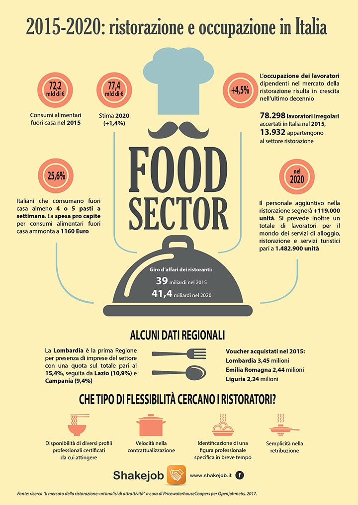 Agli italiani piace mangiare (bene), a casa come fuori: non è uno stereotipo, ma è quello che emerge dagli ultimi rapporti del settore. Nel 2016 la spesa per la ristorazione ha superato i 78 miliardi di euro, con un aumento reale dell’8% rispetto al 2008, prima della crisi economica. Il settore HoReCa (Hotellerie-Restaurant-Café) è quindi in forte crescita, ma deve fare i conti con esigenze ben specifiche. Una fra tutte, rispondere tempestivamente agli “imprevisti” legati al personale: non solo risolvere in tempi rapidi le sostituzioni last minute non preventivate, ma anche trovare risorse supplementari in caso di improvvisi picchi di lavoro.