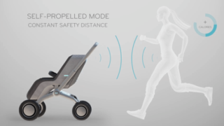 Il passeggino in questione è elettrico e può seguire una persona mentre fa shopping o corre. Si compone di una parte pieghevole e di un seggiolino rimovibile.