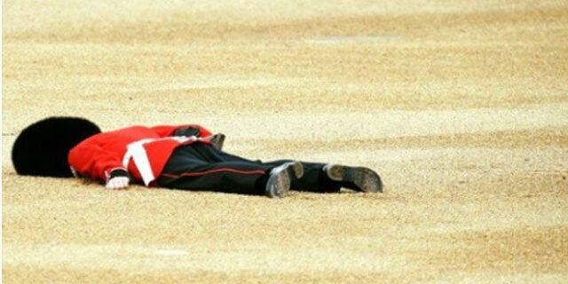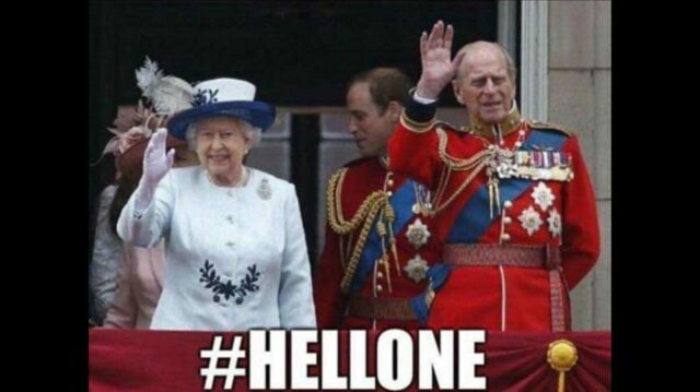 Non potevano mancare il tormentone #hellone, e l’immagine della guardia di Buckingham Palace scivolata durante il cambio.