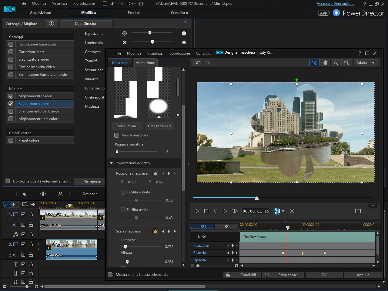 La funzione Designer maschera di PowerDirector permette di ritagliare il video con un’immagine in bianco e nero, scelta dalla libreria oppure personalizzata.