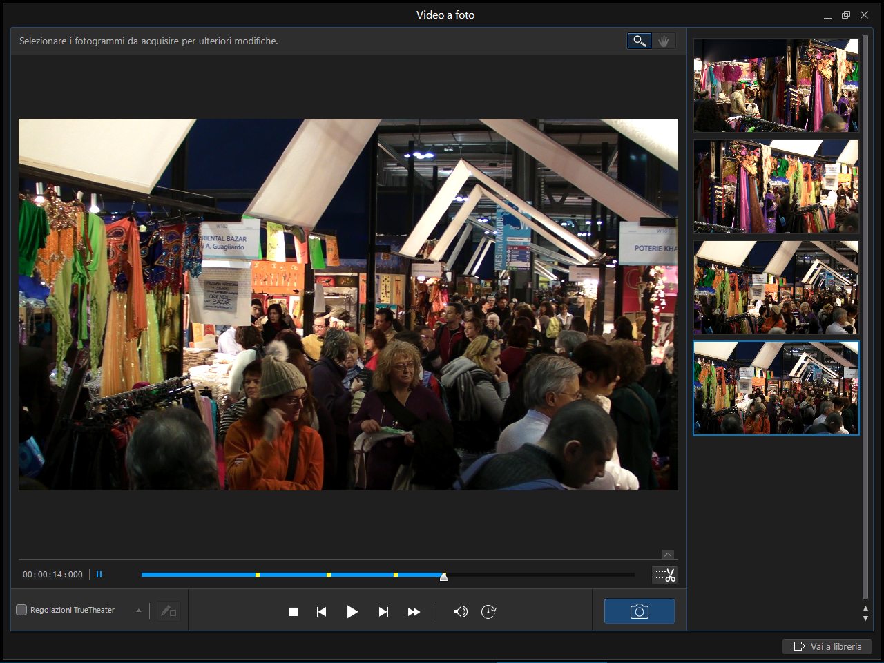 ‘impostazione del punto di vista va fatta nel modulo dedicato Designer vista, che consente di animare lo spostamento dell’inquadratura grazie ai key frame. In modalità 360 gradi, il codec disponibile in output è solo H.264 con cinque preset, che vanno da 1.280 x 640 pixel con un bit rate di 10 Mbit/s a 3.840 x 1.920 a 50 Mbit/s. Se invece il programma deve produrre un file video normale gli algoritmi di compressione sono più numerosi e includono anche Hevc/H.265, con un insieme di preset molto più nutrito.Nel modulo Centro videocamera azione, una novità dell’edizione precedente pensata per il trattamento delle riprese catturate con le action cam (di solito molto adrenaliniche e veloci), troviamo nuove opzioni per inserire nei video fermi immagine e zoom con panoramiche. I primi congelano i movimenti e rendono più drammatica la sequenza, i secondi – uniti a un rallentamento ad hoc – sottolineano i momenti più importanti della scena, come per esempio uno sportivo in azione.