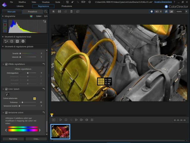 Le novità di questa edizione comprendono il motore di rendering video TrueVelocity 6, migliorato nelle prestazioni e compilato a 64 bit, per sfruttare tutta la Ram disponibile. Inoltre adesso si può lanciare il rendering dell’anteprima, per un’esecuzione più fluida dei filmati. Il programma è ora compatibile con i formati 9:16 e 2:1. Il primo è tipico delle riprese effettuare con gli smartphone tenuti in verticale, il secondo dei video catturati dalle videocamere che riprendono scene a 360 gradi. ColorDirector non ha problemi a elaborare il bilanciamento cromatico e ad applicare effetti anche a questo tipo di video, dato che, finché non devono essere distesi su una sfera virtuale, non sono diversi da quelli classici. Nuovo è l’effetto Color splash, che azzera i colori visibili nell’inquadratura tranne quello selezionato dall’utente, con un effetto già visto in PhotoDirector (Macchia colore).
