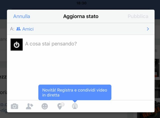 Dopo Twitter con Periscope anche su Facebook approda la diretta video. Disponibile in italia per ora solo su iOS, la nuova funzione video in live streaming è attiva per gli utenti statunitensi (iOS e Android) già da due settimane.