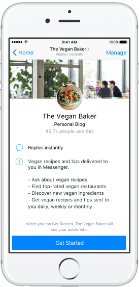 Gli annunci pubblicitari compariranno direttamente in Messenger: in questo modo gli utenti desiderosi di ricevere maggiori informazioni in merito a un prodotto potranno avviare una conversazione e porre domande direttamente al bot dell’azienda. Sempre restando in tema di bot, all’avvio di una chat comparirà uno screenshot con informazioni come tempo medio di risposta e categoria della pagina associata.