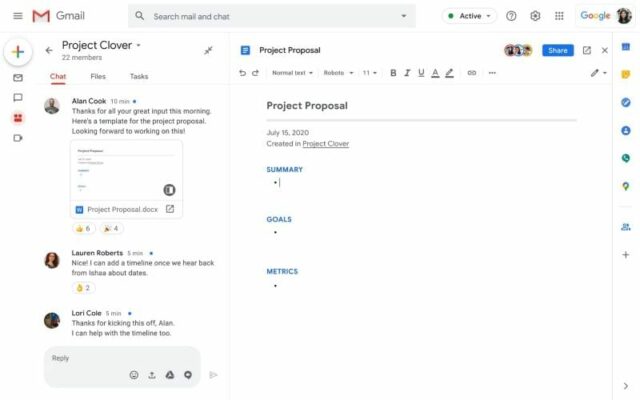 L’azienda di Mountain View aveva già avviato l’integrazione tra i singoli servizi, portando Google Meet in Gmail su web, Android e iOS. Lo stesso è stato fatto per Google Chat su desktop e presto toccherà anche alla versione per Android e iOS. I clienti della G Suite possono utilizzare le nuove funzionalità di collaborazione, come la visualizzazione dei file condivisi e delle attività nelle “chat rooms“, stanze virtuali create per lavorare in gruppo su specifici progetti.