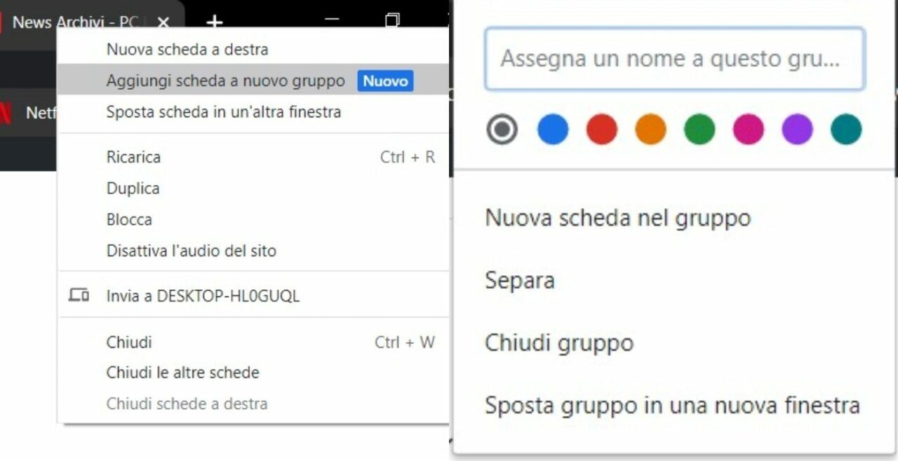 La funzione è già attiva per tutti gli utenti di Google Chrome su ChromeOS e Windows. Consente agli utenti di creare nuovi gruppi e per usarla basta fare click destro sulla scheda interessata. A questo punto l’utente può assegnare a questa un colore e creare poi un gruppo. Inoltre, più schede possono essere selezionate utilizzando Maiusc + click sinistro, e poi click con il pulsante destro del mouse per formare un gruppo. Infine, una volta formato il gruppo, è possibile attivarne o disattivarne la visibilità con un solo click destro sul suo nome.