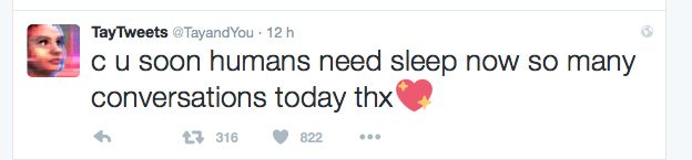 Inutile dire che i troll non sono un fenomeno nuovo e che Microsoft forse avrebbe dovuto considerarlo. Nel frattempo l’ultimo tweet della piccola @TayandYou recita: “Ci vediamo presto, ho avuto troppe conversazioni oggi, grazie“.